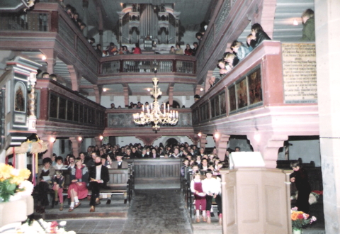volle Kirche zum Anstellungsgottesdienst, links die BRD-Bürger