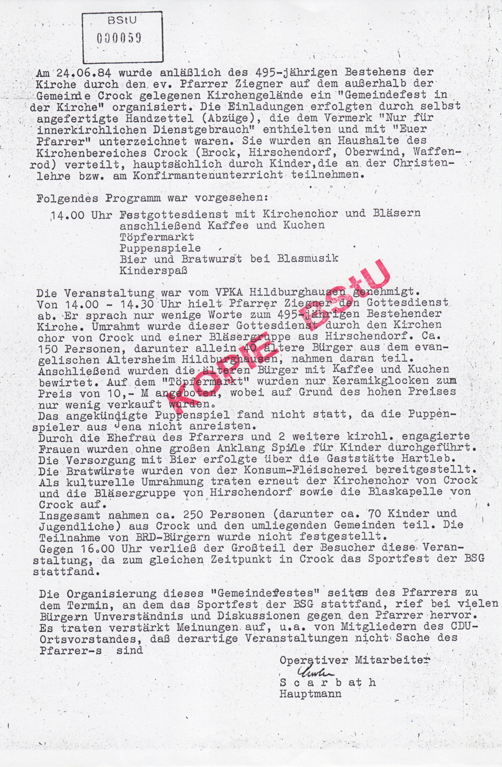 Bericht an die Stasi von IM Peter Steinbach 1984.