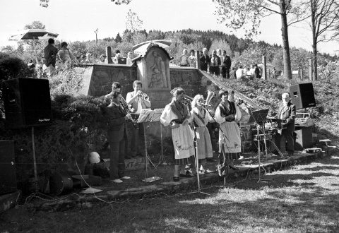 Zu jedem Gemeindefest spielte die Hirschendorfer Blasmusik unter der Leitung des Organisten Helmut Hanft (rechts im Bild).