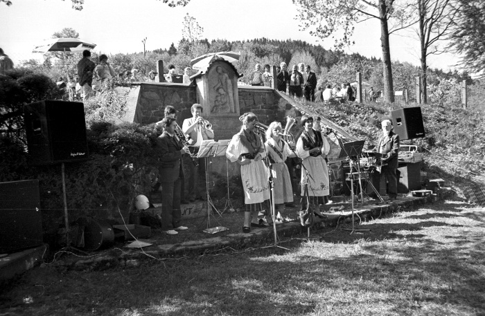 Zu jedem Gemeindefest spielte die Hirschendorfer Blasmusik unter der Leitung des Organisten Helmut Hanft (rechts im Bild).