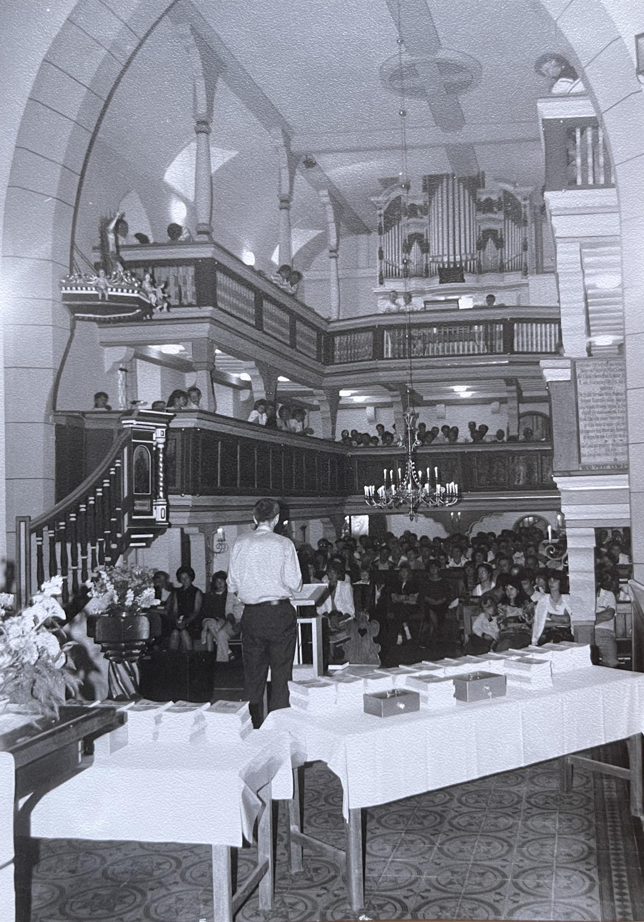 Verkauf der Broschüre zur Kirchengeschichte 1989