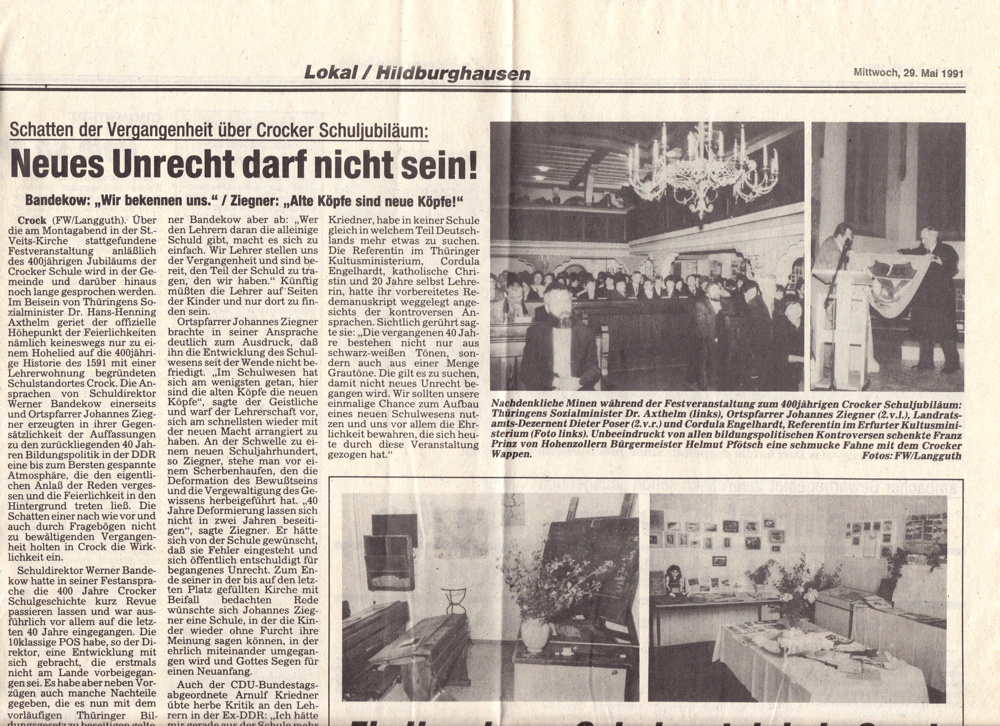 Kirchgemeinde Crock in der Zeitung 1992