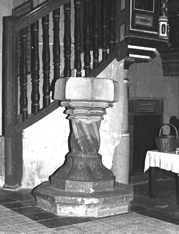 Der 500 Jahre alte Taufstein sehr vernachlässigt. Haustaufen wurden bevorzugt.