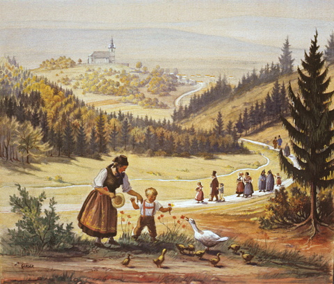 So schön liegt die Crocker St. Veits-Kirche. Heute ist diese fast nicht mehr zu sehen, da ein Buchenhain die Kirche umschließt. Der Blick von Waffenrod-Hinterrod kommend.