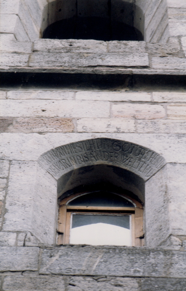 Inschrift am Turmfenster Kirche Crock.