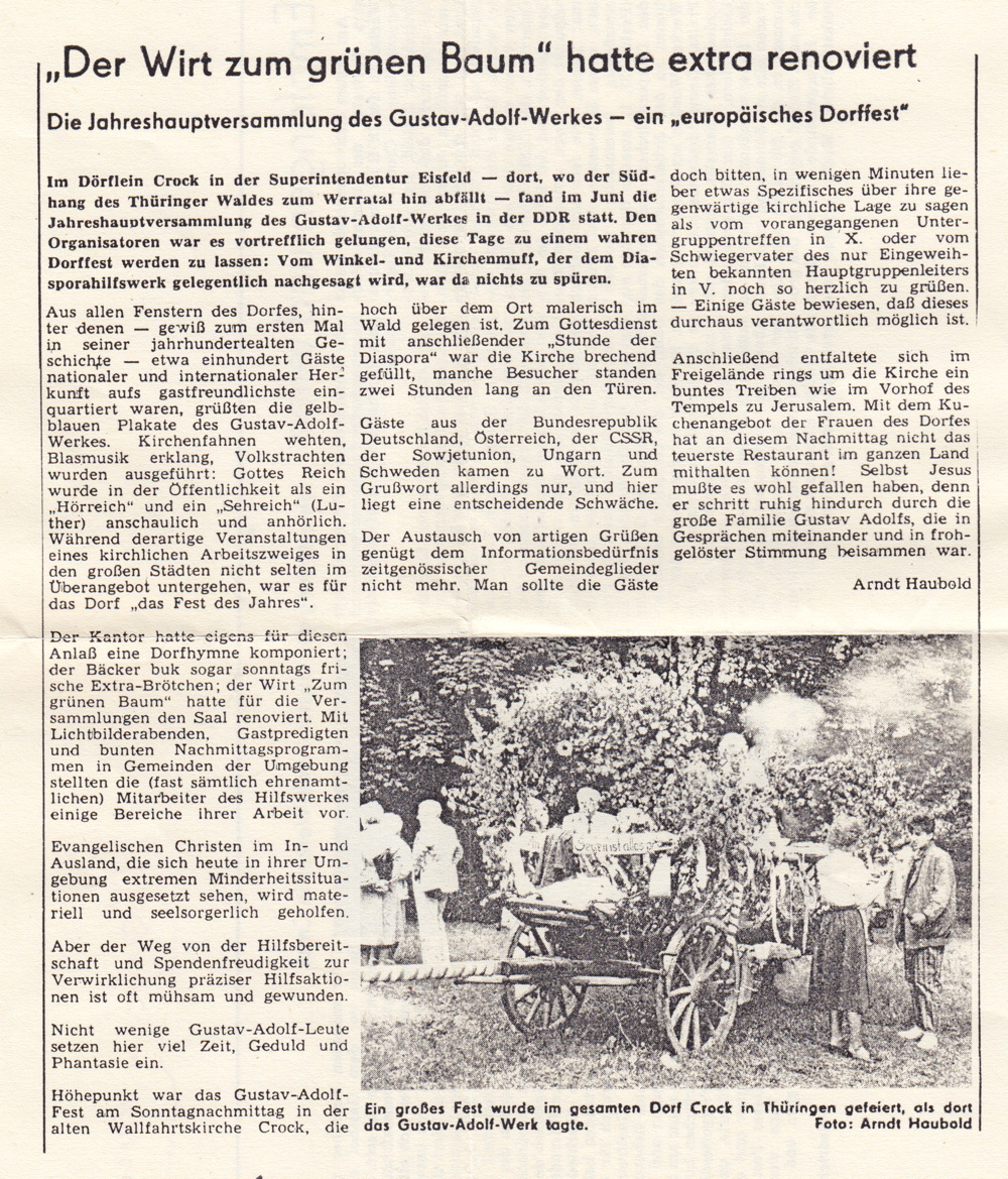 Presseschau Jahrhundertfeier Kirche Crock 1989