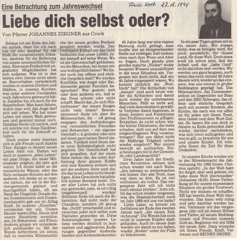 Presseschau Jahrhundertfeier Kirche Crock 1989