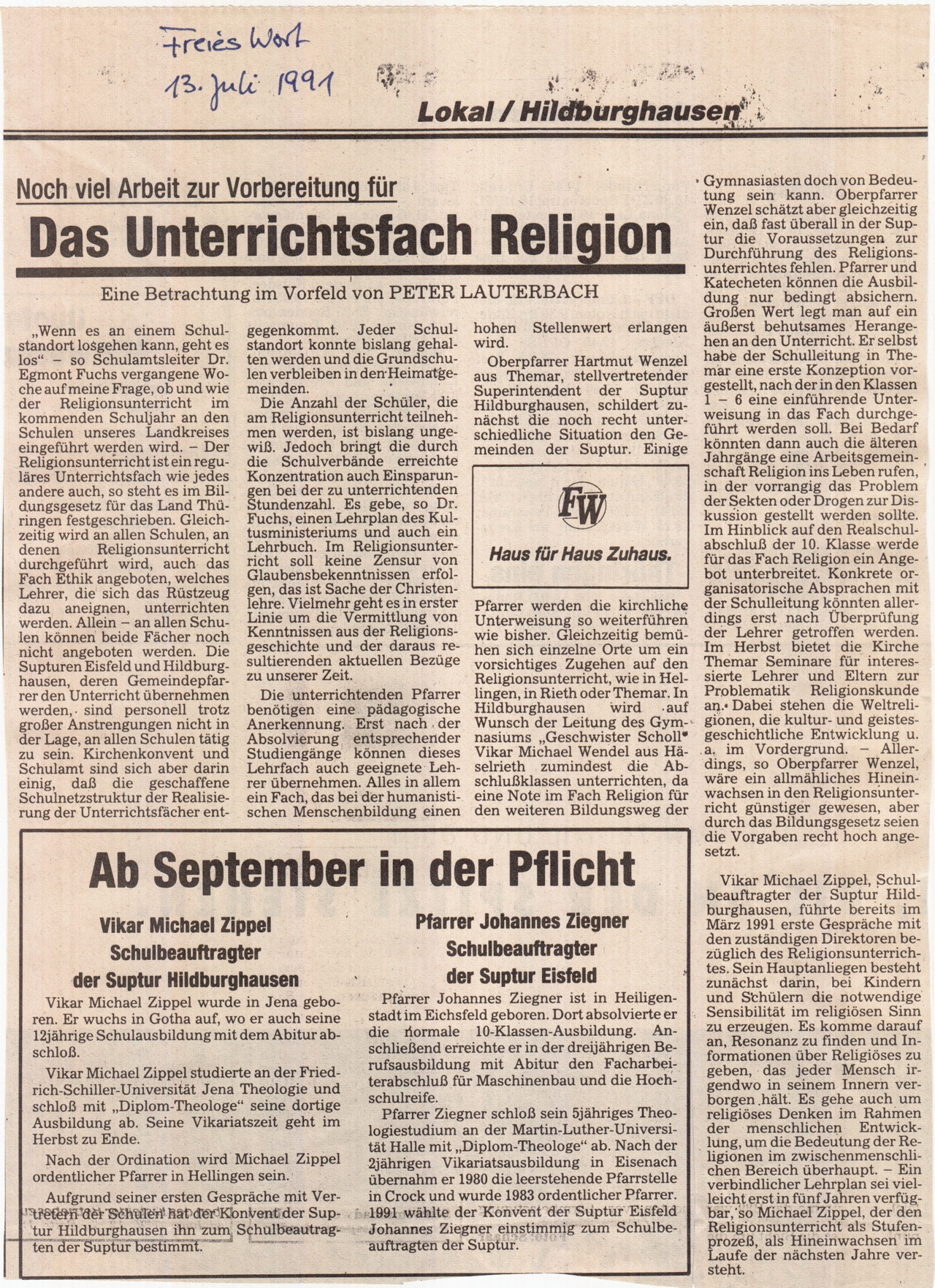 10 Jahre Evang. Religionsunterricht in Thüringen