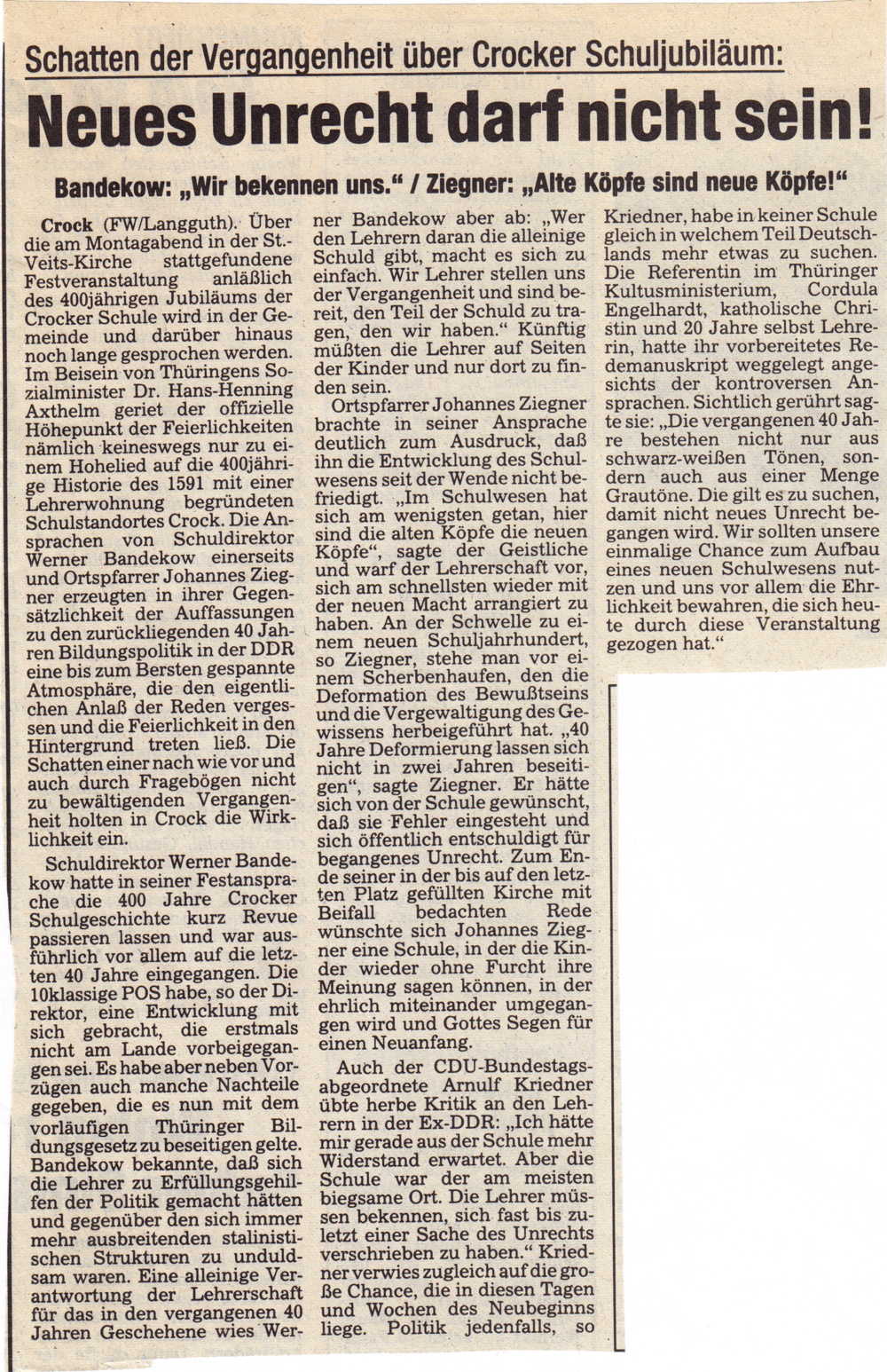 Ansprache Pfarrer Ziegner Schulfeier 1991