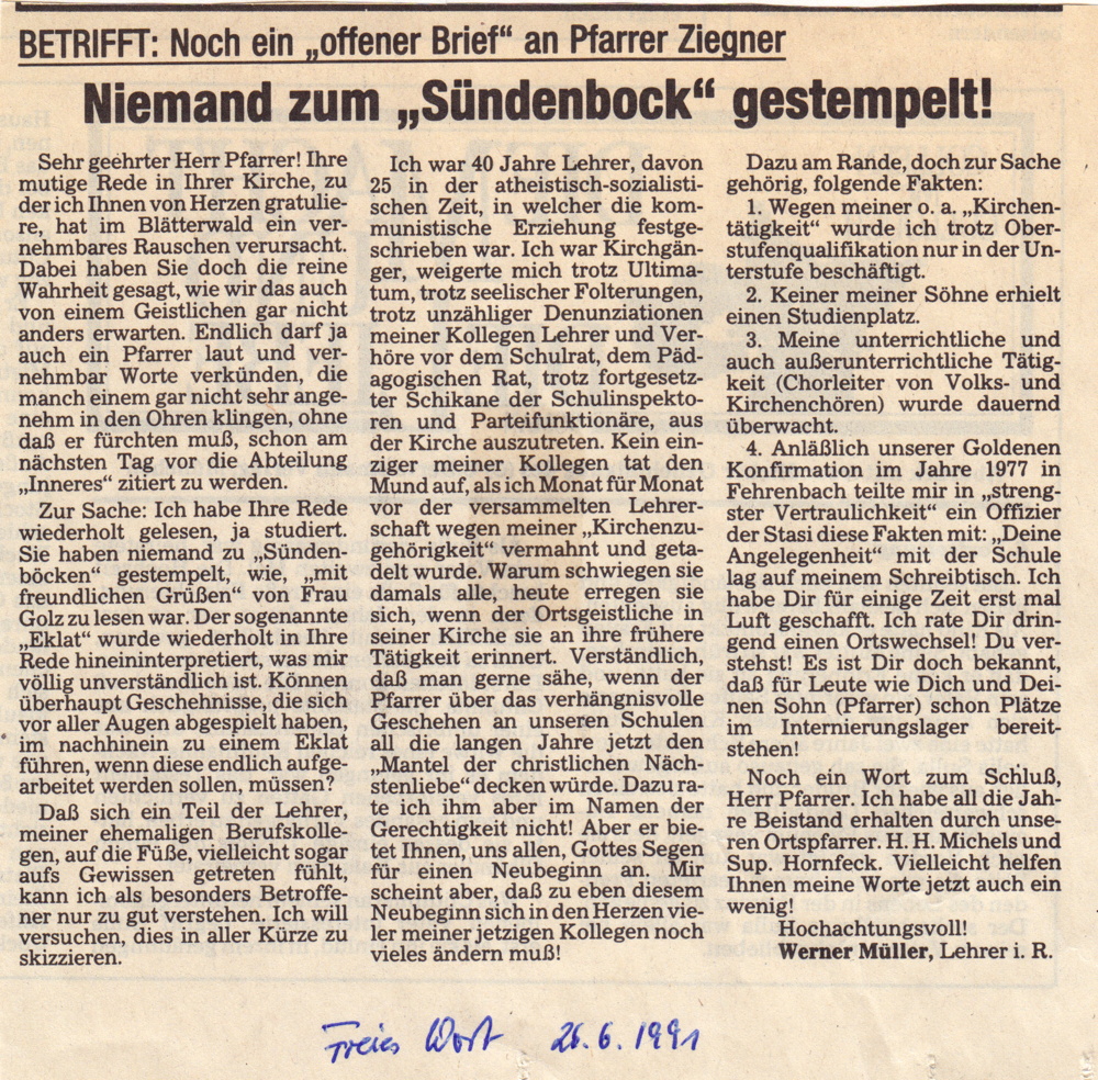 Presseschau Jahrhundertfeier Kirche Crock 1989