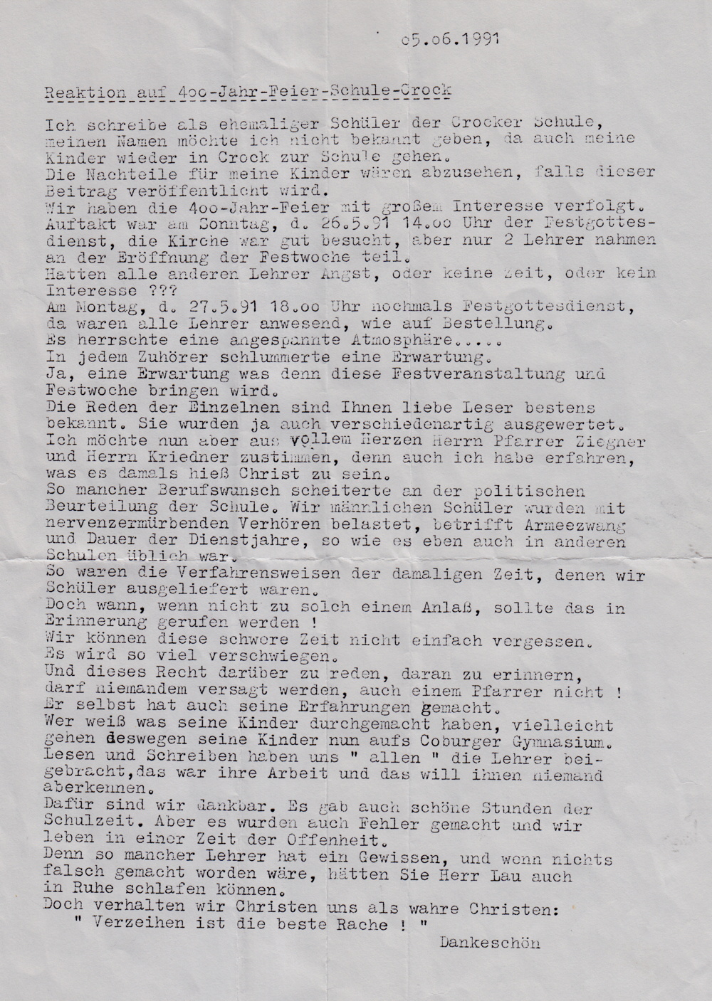 Eklat zum Crocker Schuljubiläum 1991