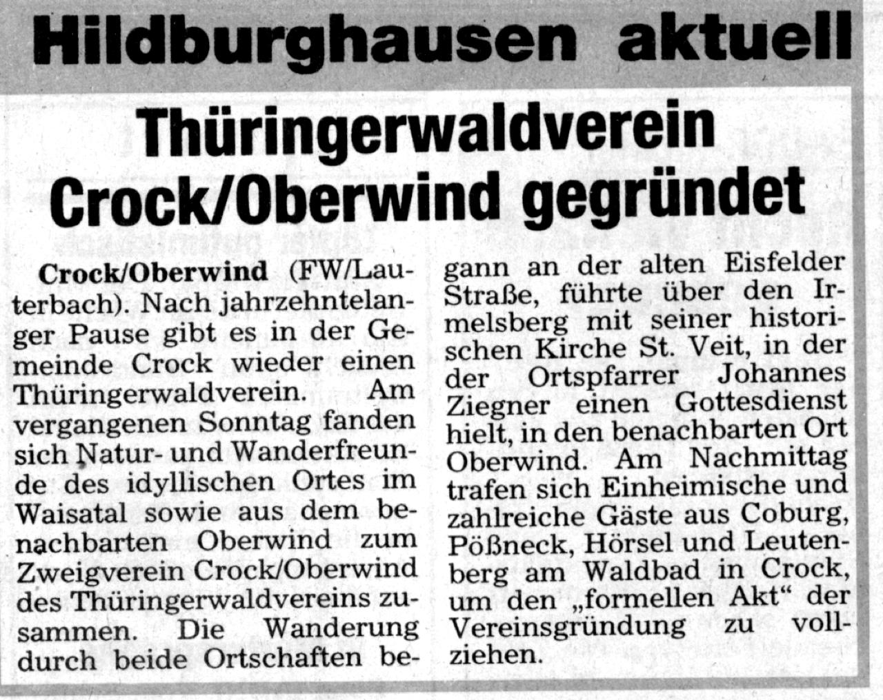 Kirchgemeinde Crock in der Zeitung 1992