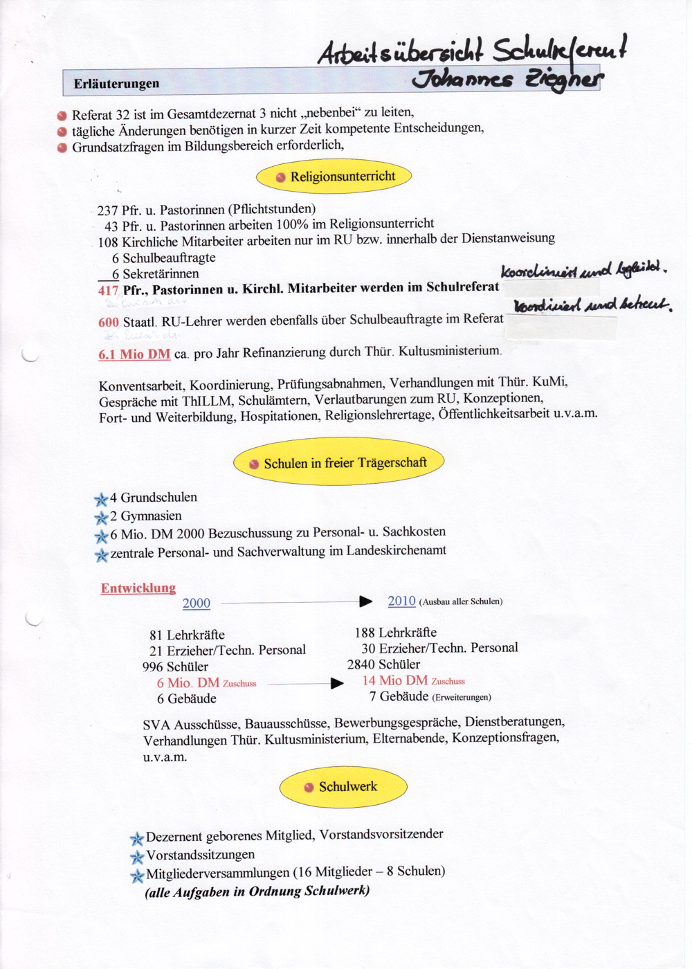 Arbeitsübersicht Schulreferat